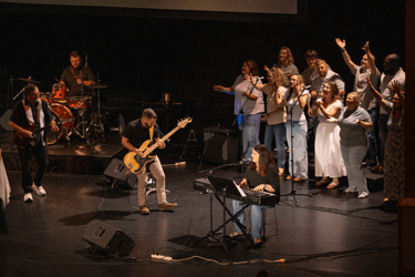 Student and young adult lead worship, scripture, and prayer.