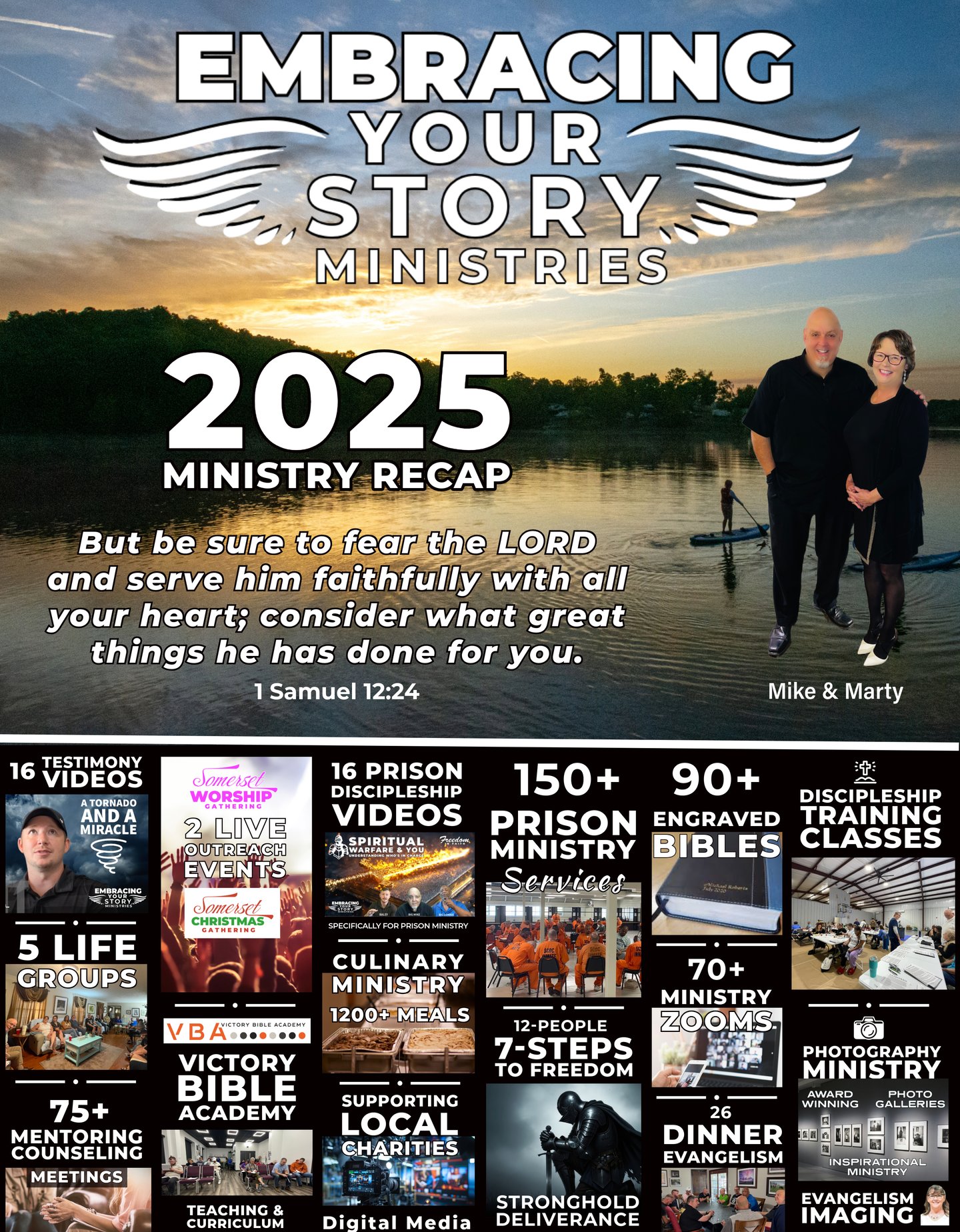 Community Outreach: Special events (Worship/Testimony Concerts), Monthly Life Groups, Teaching of classes at Victory Christian Fellowship, as well as Speaking Engagements.
